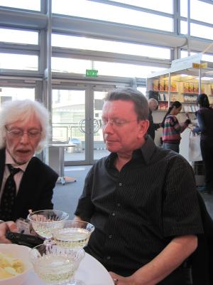 Foto: Anne Monika Sommer-Bloch 2012, TGR mit Karl Heinz Augustin am Stand des Talheimer Verlags Mössingen auf der Frankfurter Buchmesse.